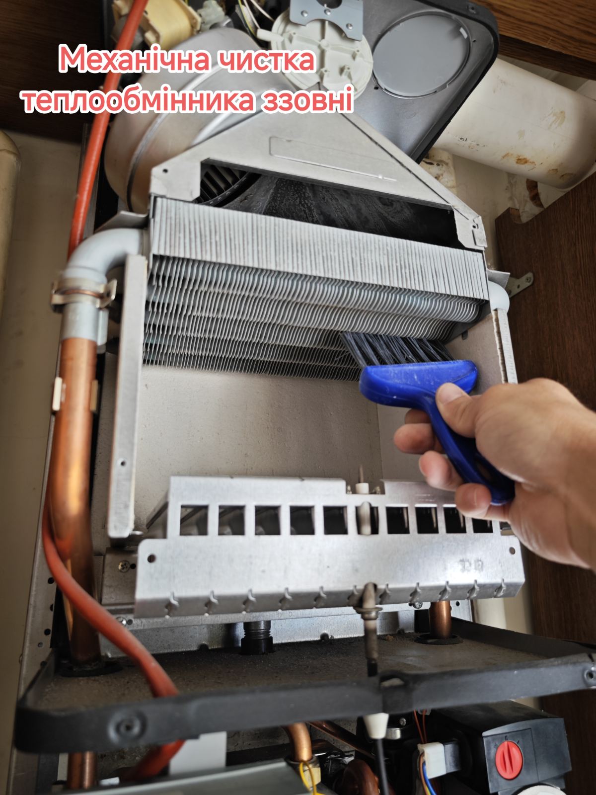 А із Rothenberger Rocal 20 промито первинний та вторинний теплообмінники газового котла Feroli.