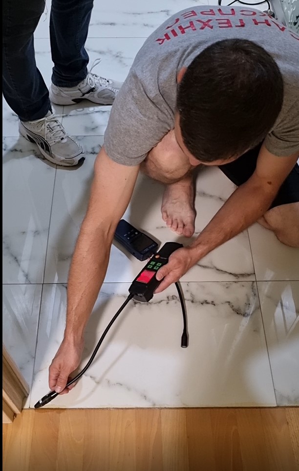 Проблемне місце виявлено. На ділянці 60 см замовнику потрібно розібрати паркет , щоб добратись до причини протікання.