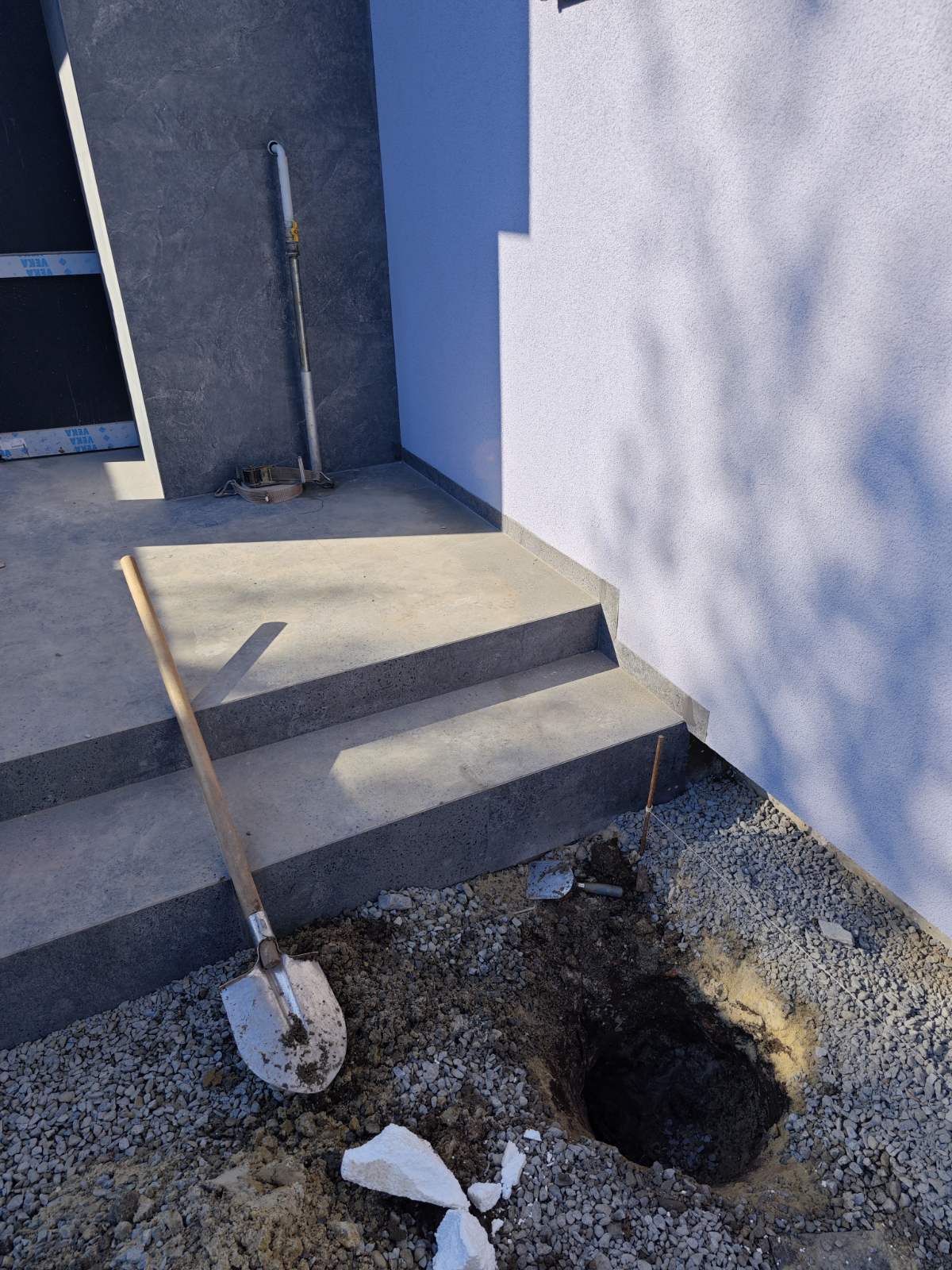 Труба частково (2м) йшла під сходами, а решту по подвір'ї.