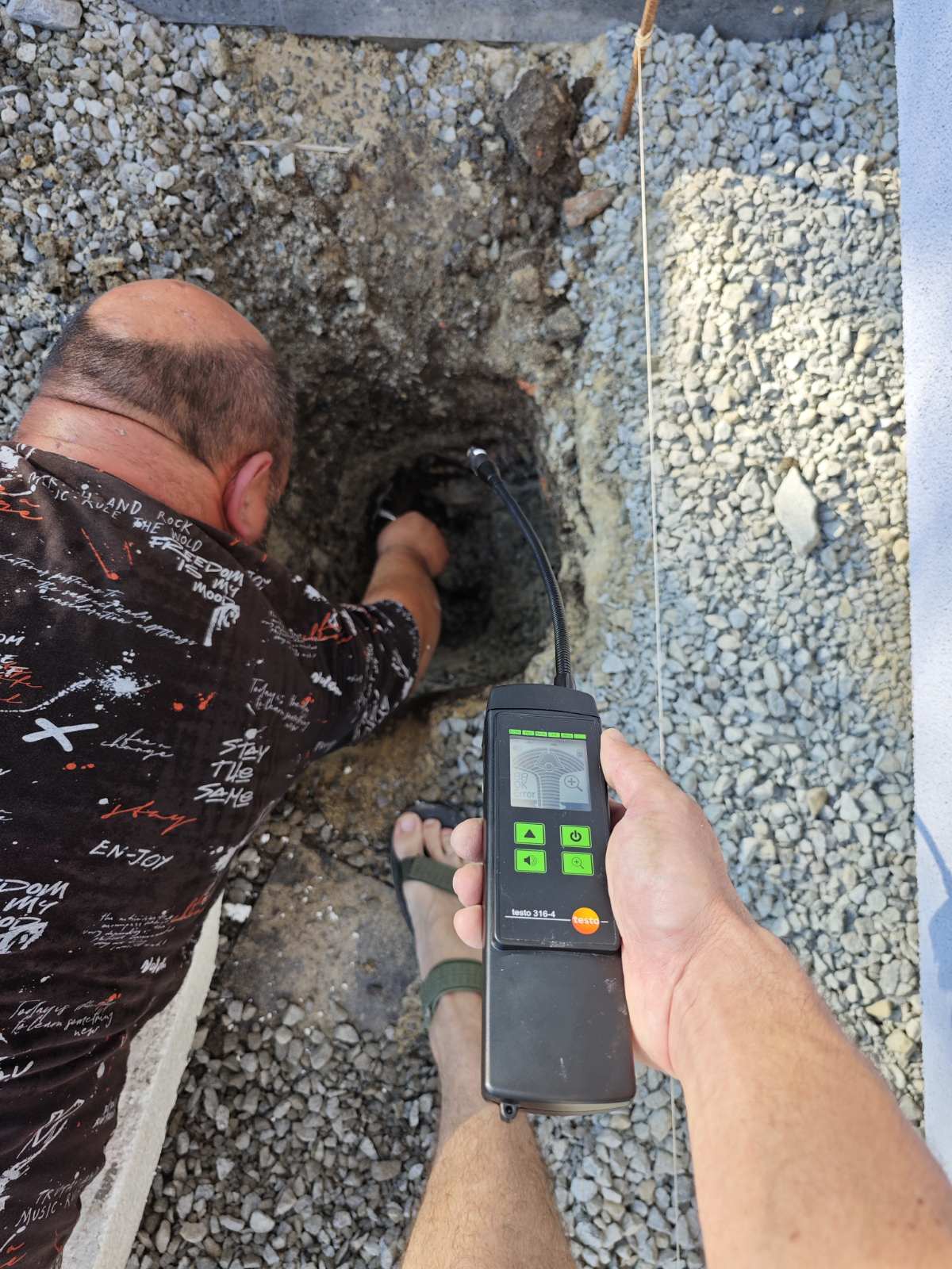 Пошук прихованого витоку під землею, в поліетиленовій газовій трубі