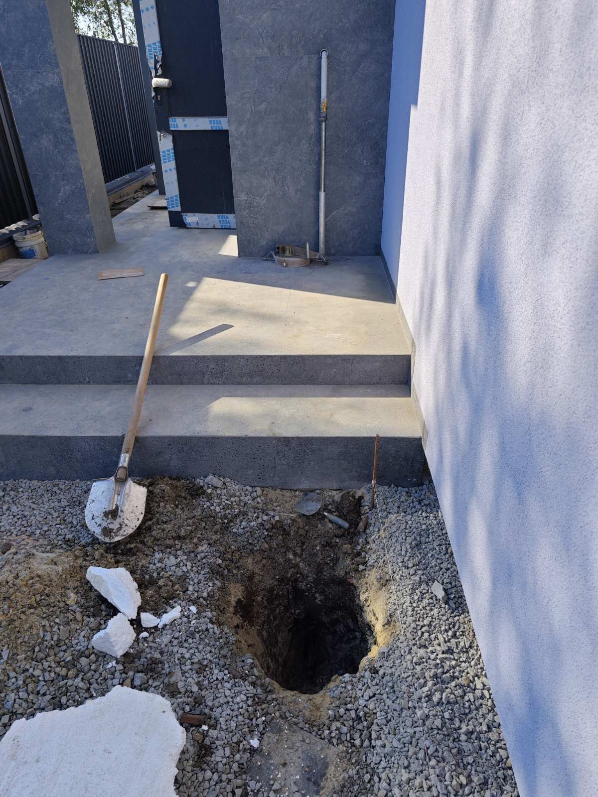 Труба частково (2м) йшла під сходами, а решту по подвір'ї.